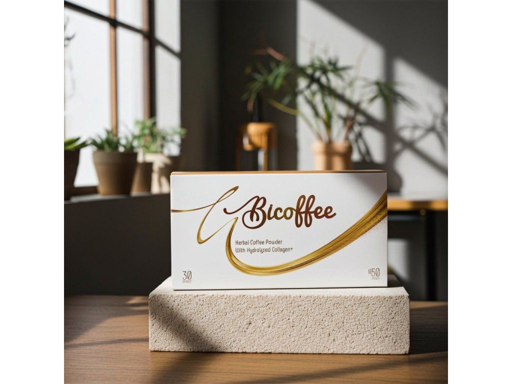 Bicoffee je funkční instantní káva s přidaným kolagenem typu I–III a výtažky z rostlin, které: